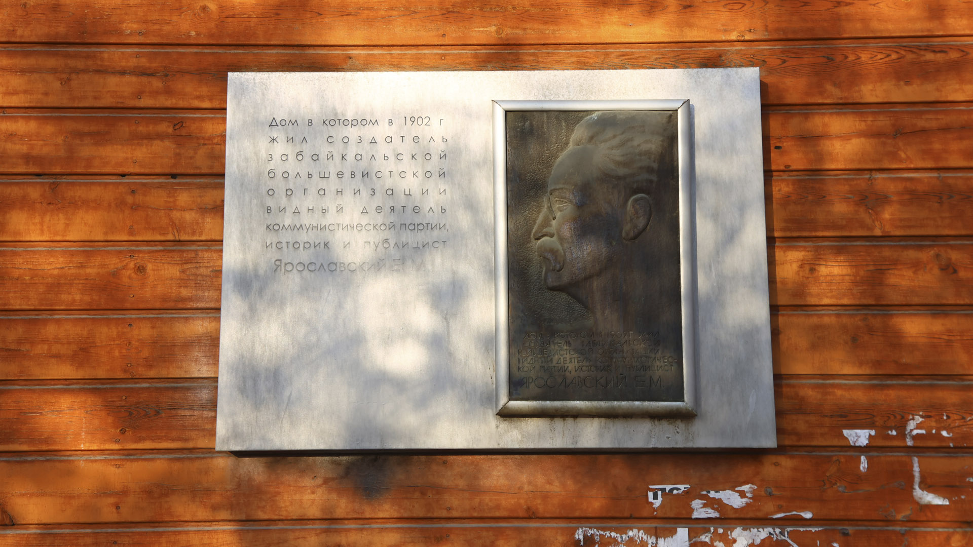 «Деревянный одноэтажный дом с цокольным этажом, был построен в 1900 году для семьи читинского купца первой гильдии Михаила (Моисея) Осиповича (Иосифовича) Помус, младшего брата известного купца и мецената, потомственного почетного гражданина Зельмана Иосифовича Помус. Михаил Помус был не плохим купцом, сферой его интересов была не только торговля, но и обслуживание железнодорожного строительства и станций Забайкальской и Амурской железных дорог, а так же изыскательные проекты для золотодобывающих компаний. Наряду с купеческой деятельностью он активно участвовал и в жизни еврейской общины Читы, в которой занимал должность ученого еврея с 1894 по 1897 г.г. Видимо семья Помус имела тесные родственные или дружеские связи с семьей ссыльнопоселенцев Губельман, которой Михаил Осипович оказывал покровительство. Поэтому в его доме частым гостем был будущий член правительства Дальневосточной республики Моисей Израилевич Губельман, а его брат Миней Израилевич Губельман, более известный под именем Емельян Михайлович Ярославский, один из членов и создателей Читинского комитета РСДРП, жил в этом доме, с семьей Помус, в 1902 году. К сожалению, дальнейшая судьба хозяев этого дома малоизвестна. Известно, что после гражданской войны Михаил Осипович жил в Шанхае. Его сын Илья Михайлович учился в Казанском императорском университете и работал врачом Одесского порта. Где в 1937 году был репрессирован и после освобождения в 1947 году эмигрировал в Израиль…»