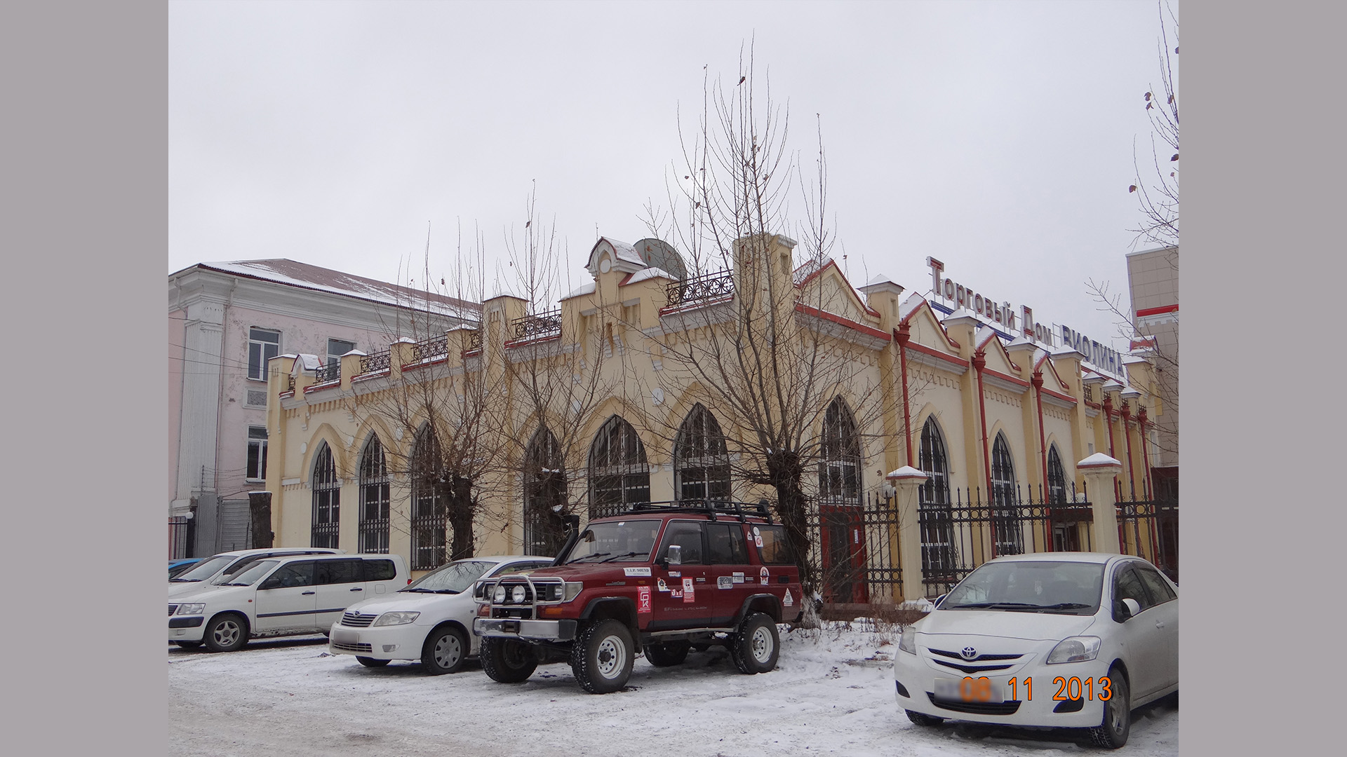 «В 1860 году в Чите был открыт городской клуб в 2-х этажном деревянном здании на углу улиц Амурская и Николаевская. В нем было несколько залов. В 1875 году, с разрешения Военного губернатора, была открыта общественная библиотека, принадлежащая городу. Ежегодно избирался Совет старейших, который руководил работой клуба. Впоследствии этот клуб стал называться 1-м Общественным собранием…