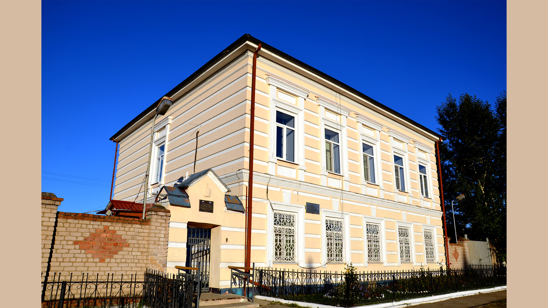 «Кирпичное 2-этажное оштукатуренное здание построено в 1871 по проекту архитектора Н.В. Владыкина. Расположено на красной линии застройки. На вост. фасаде выделен ризалит с лестничной клеткой. Рустованные фасады здания разделены междуэтажным карнизом. Оконные проемы имеют рамочные наличники, на 2-м этаже – с сандриками. Над двумя оконными проемами 2-го этажа пристройки сандрик общий. Слева к гл. фасаду здания примыкают кирпичные ворота с прямоугольным проемом».