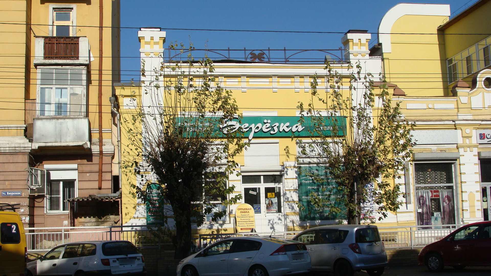 «Торговое одноэтажное каменное здание с лаконичным декором было построено в 1921 г. торговым товариществом «Иктисад», распорядителем которого был член татарской общины Г.Б. Бикмуллин. Владелец пристроил здание вплотную к юго-восточному фасаду дома А.А. Бутакова (позже Г.М. Бутаковой), который проектировался архитектором Л. Коргановым как электротеатр и магазин. По его проекту, утвержденным вице-губернатором Забайкальской области в 1914 г., дом Бутакова должен был состоять из трех повторяющихся объемов, но при строительстве были внесены изменения. Реализованным оказался только левый фасад здания. Позже среднюю площадь предполагаемой застройки заняло трехосное здание, главным фасадом, выходящее на красную линию средней части улицы Амурской и составившее с левым объемом один архитектурный ансамбль и один почтовый адрес. Оба дома имели глубокие подвалы, где хранилось замороженное мясо. Позже подвалы строений были соединены общим входом с перегородками. С самого начала здание служило городу как торговый центр. Своим расположением, удобством и пластикой главного фасада, функционирующие в нем разные магазины привлекали массу покупателей. В советское время здесь располагался комиссионный магазин и другие торговые учреждения…»