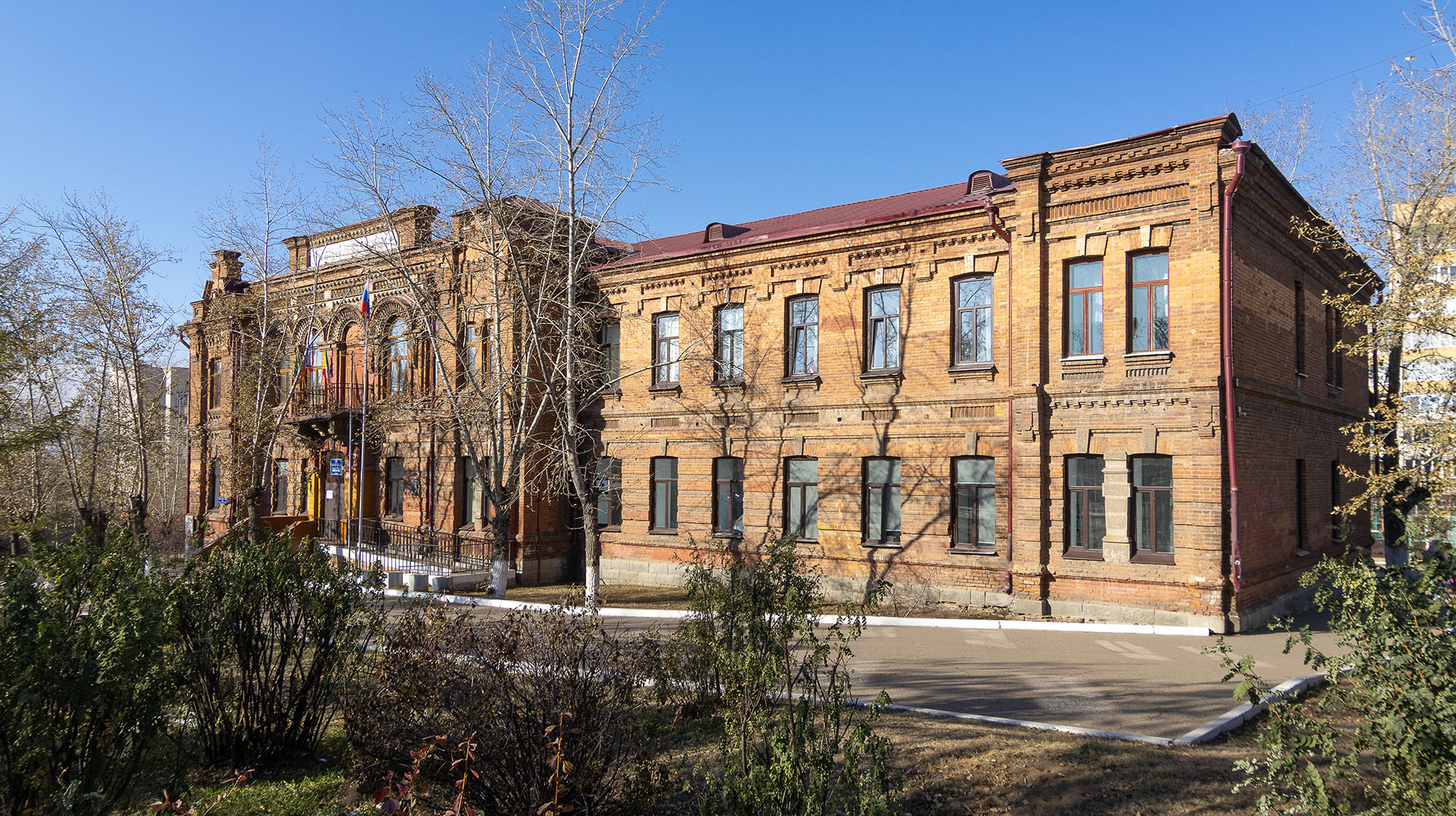 "Утрачена башенка над помещением домовой церкви. На гл. фасаде прикреплена мемориальная доска с текстом: «В этом здании с 1903 по 1918 находилась учительская семинария, в к-рой работал нелегальный социал-демократический кружок. Из стен семинарии вышли борцы за власть Советов в Заб., красногвардейцы и командиры партизанских отрядов: Е. Широких-Полянский, организатор нелегального социал-демократического кружка, Н. Широких, С. Киргизов, Г. Богомяков, Г. Аксенов, А. Блинников». В здании работают ср. школа № 3…"