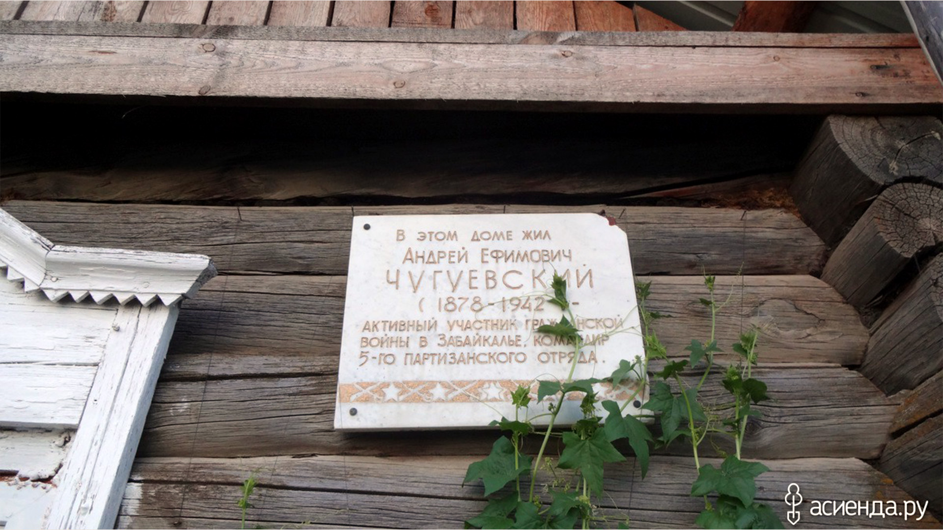 Дом, в котором жил Чугуевский А.Е., командир 5-го партизанского полка // Объекты культурного наследия Забайкалья [электронный каталог] / авт.-сост. А.В. Якушев. URL: https://75.nnrf.ru/#p=128 (дата обращения 3 нояб. 2025 г.).