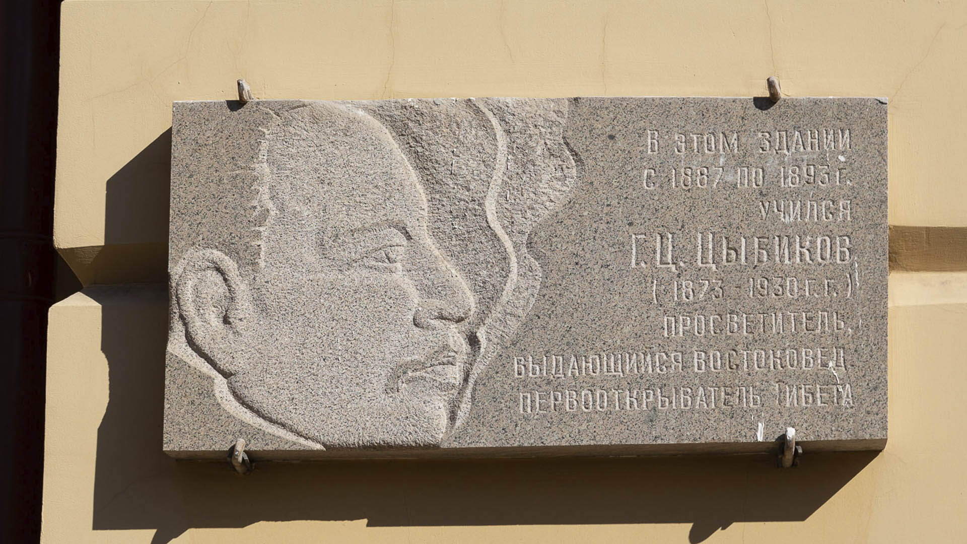 Мемориальная доска в честь Г. Цыбикова. г. Чита, ул. Бабушкина, 46. 2024 г. Фото Максима Федосеева