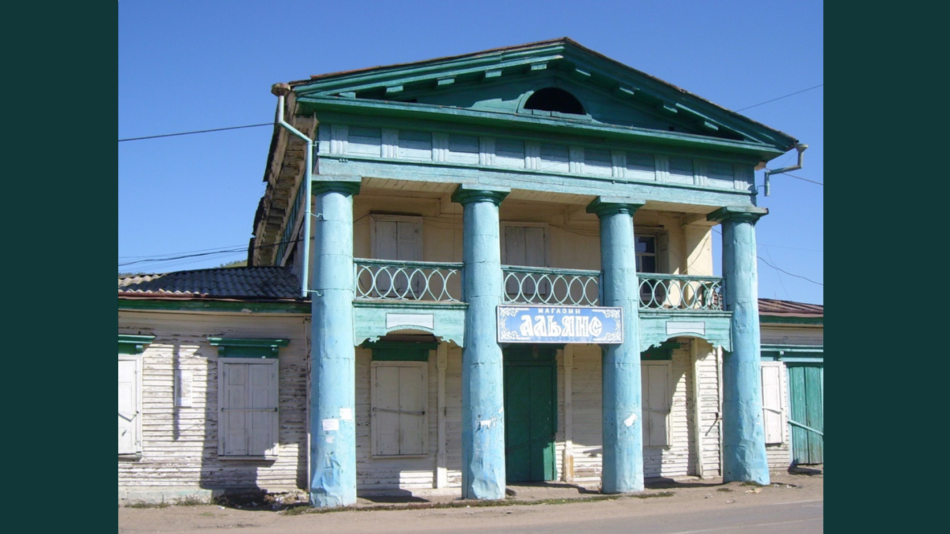 «КАНДИНСКИХ ДОМ, с. Нерчинский Завод, ул. Красноармейская, 55, выявленный объект культурного наследия (2001). Памятник арх. и градостроительства нач. 19 в. Образец дома с мезонином (см. Архитектура сельских зданий). Стр-во дома завершено в 1850-е. При строительных работах использовались в основном местные материалы. Лес заготавливался на специально отведенных участках за пределами Нерчинского Завода. Для фундамента здания использованы просушенные блоки из глинистого сланца, залежи к-рого находятся недалеко от с. Нерчинский Завод. Оконные стекла заказывались на Шилкинской стекольной ф-ке. Учитывая, что тер. усадьбы занимала болотистый участок, проектировщики-инженеры сконструировали дренажную систему для предотвращения затопления подвальных помещений. На стр-ве были задействованы заводские умельцы и крестьяне. Деревянный оштукатуренный дом с мезонином является акцентом застройки общепоселковой площади с. Нерчинский Завод. Четырехколонные портики, расположенные на гл. и дворовом фасадах, придают неповторимую выразительность зданию. Прежде парадный вход украшало высокое, на ширину портика, крыльцо, возвышая здание над площадью. Особую роль в арх. здания играет мезонин под 2-скатной кровлей, стены к-рого завершены дорическим фризом с метопами и триглифами и увенчаны карнизом большого выноса. Стены 1-этажных объемов здания с вальмовой кровлей, с выделенными в виде лопаток перерубами и углами завершены профилированным дощатым карнизом. Прямоугольные оконные проемы – с филенчатыми ставнями. Рамочные наличники увенчаны профилированной полочкой на криволинейных резных кронштейнах. Вертикальные сжимы, укрепляющие стены мезонина в интерьерах, оформлены как декоративные элементы. Сжимы около парадного входа выполнены в виде пилястр, декорированных резьбой. На нач. 21 в. сохранились элементы интерьеров помещений: на 1-м этаже – профилированные тяги, лепные розетки, архивольты, внутренняя филенчатая двупольная дверь гл. входа, на 2-м – деревянные галтели между стенами и потолком по периметру помещений, профилированные тяги в виде арок между колоннами-сжимами. В доме в течение долгого времени находился центр хоз., культурной жизни Нерчинского Завода: заключались сделки, проходили лит. и музыкальные вечера. В числе приглашенных бывали поэты Ф.И. Бальдауф и А.Н. Таскин. В этом доме останавливались жены декабристов. После банкротства в 1858 Н.Х. Кандинского и описи его имущества тер. усадьбы продолжала оставаться центром общественной жизни села. Возле нее проводились торги и торжества, а в годы Сов. вл. – митинги и демонстрации. В нач. 20 в. в доме выполнена перепланировка и заселены жильцы, в 1930-е в нем находились магазин и склады. В подвале хранили продукты. К сер. 20 в. дренажная система вышла из строя, вследствие чего подвал залило грунтовыми водами. Длительная эксплуатация здания без проведения капитального ремонта ведет к постепенному разрушению уникального объекта: поврежденная штукатурка на стенах 1-го этажа закрыта деревянной обшивкой, а на колоннах – металлическими листами, проржавевшее металлическое покрытие кровли частично закрыто шиферными листами, частично разобрано, что ведет к гниению конструкций кровли, перекрытий, деформации карниза. Отсутствие вертикальной планировки и постоянного повышения уровня земли вдоль гл. фаса