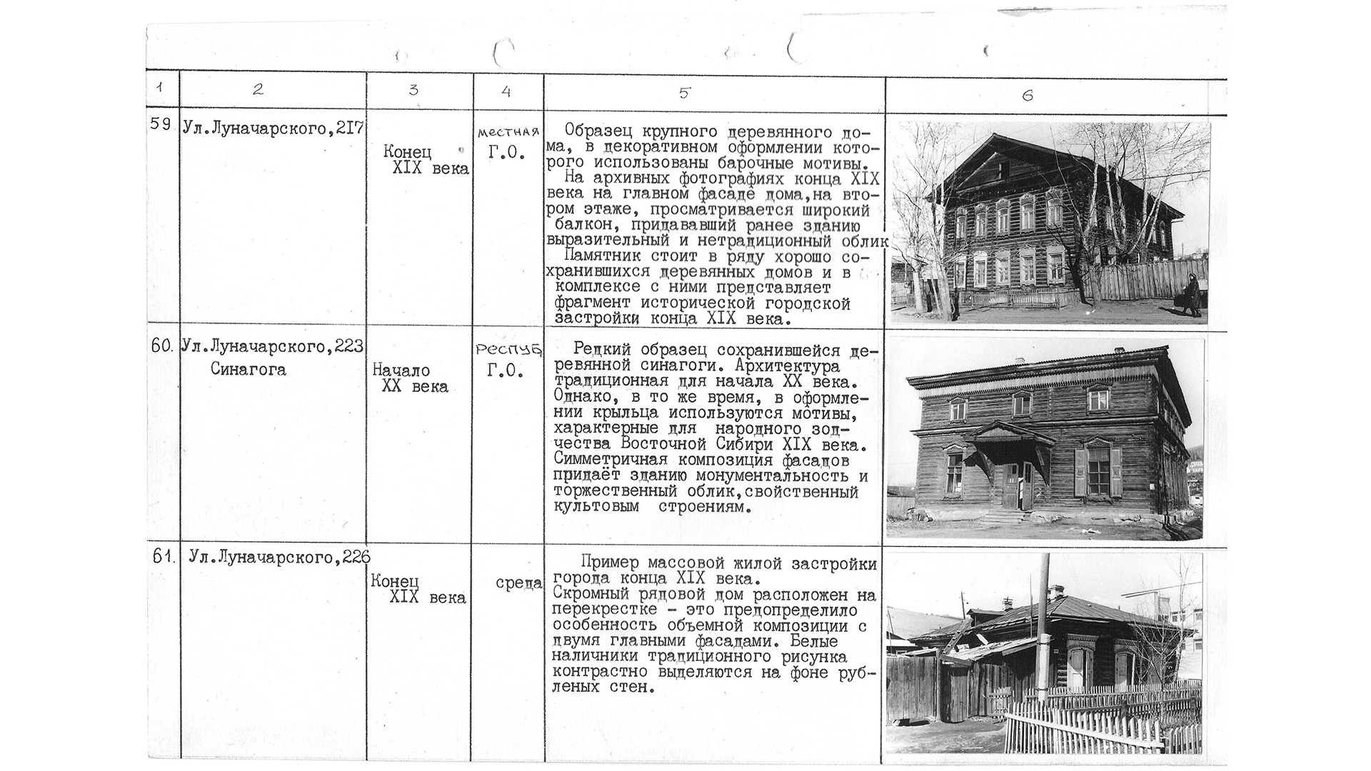 «Редкий образец сохранившейся деревянной синагоги. Архитектура традиционная для начала XX века. Однако, в то же время, в оформлении крыльца используются мотивы, характерные для народного зодчества Восточной Сибири XIX века. Симметричная композиция фасадов придает зданию монументальность и торжественный облик, свойственный культовым строениям».